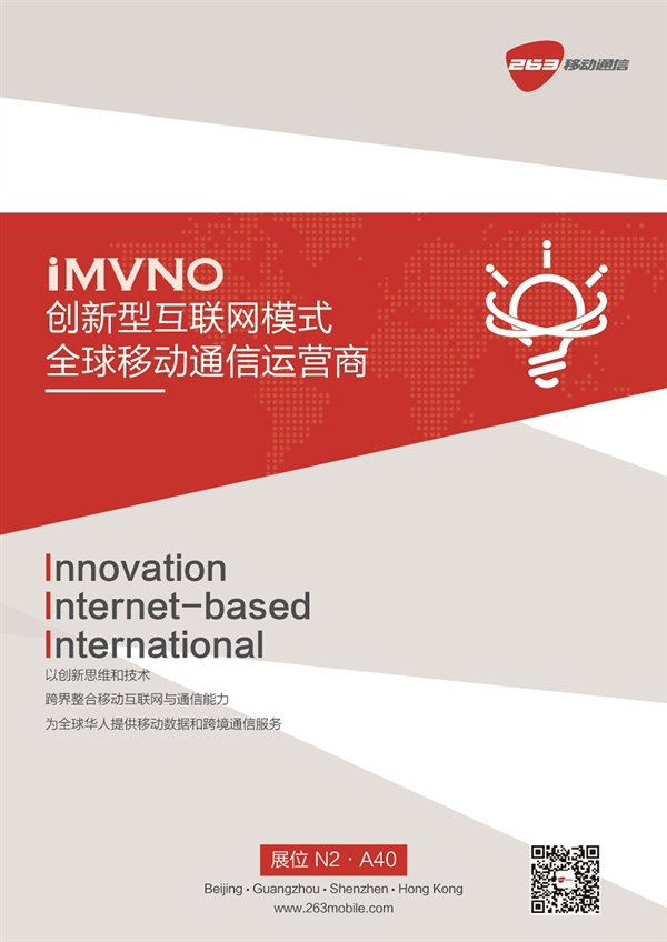 263移动通信本次参展览设计位在N2·A40,将重点展出即将触达1.2亿智能终端的“263环球通”移动数据服务,以及启动中的华人跨境通信“中外一卡双号”服务。